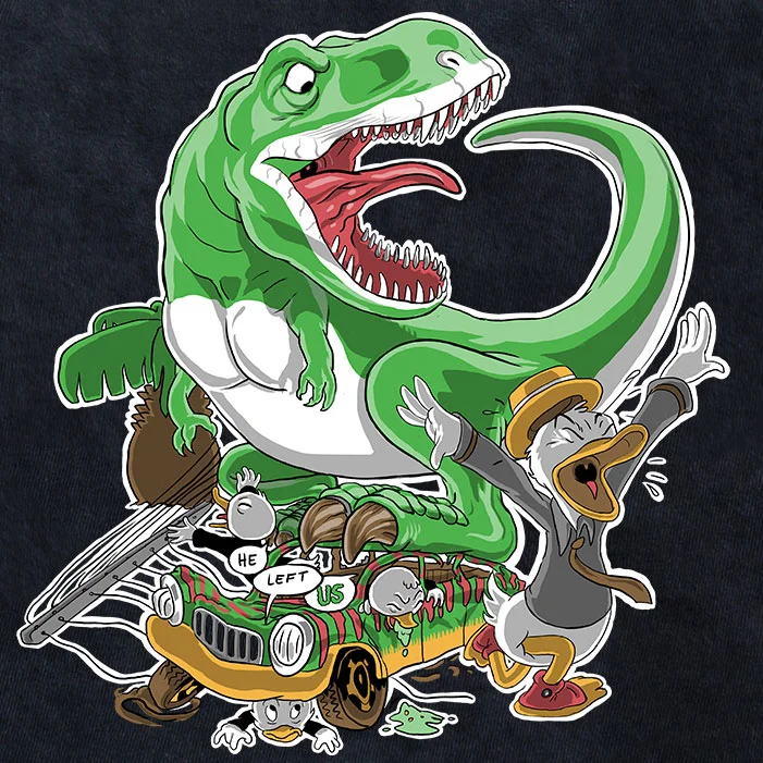 This shirt is screen-printed on 100% cotton and has a luxurious and subtle stone wash. No two shirts are the same. A tiny trooper’s head sporting headphones on the sleeve and stitching matching the sword guarantee this is an authentic, limited edition Octop parody shirt.