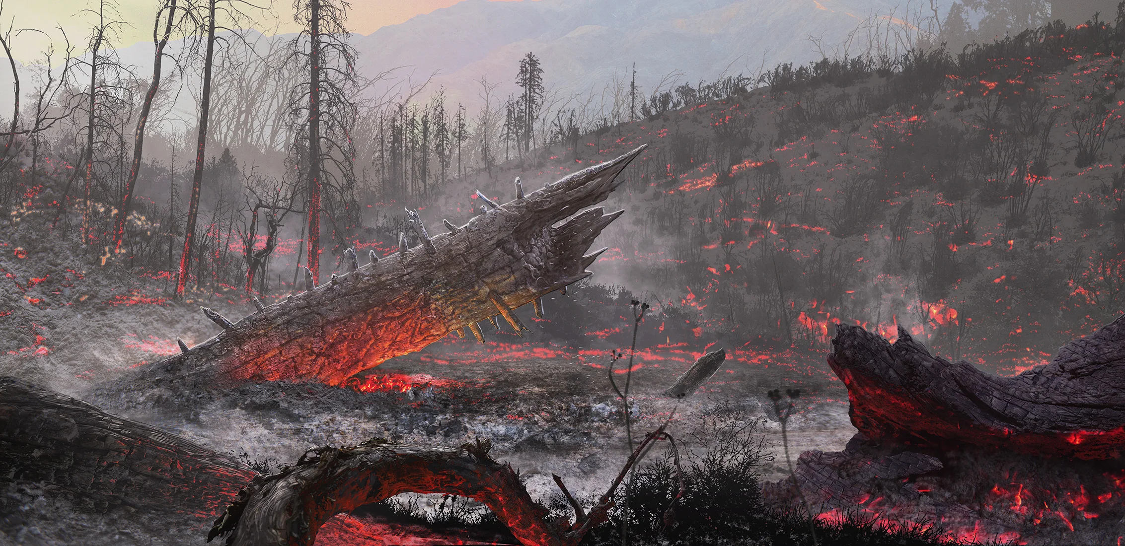 The intent is to show multiple characters popping up from under the ash while panning in an epic sized landscape.
